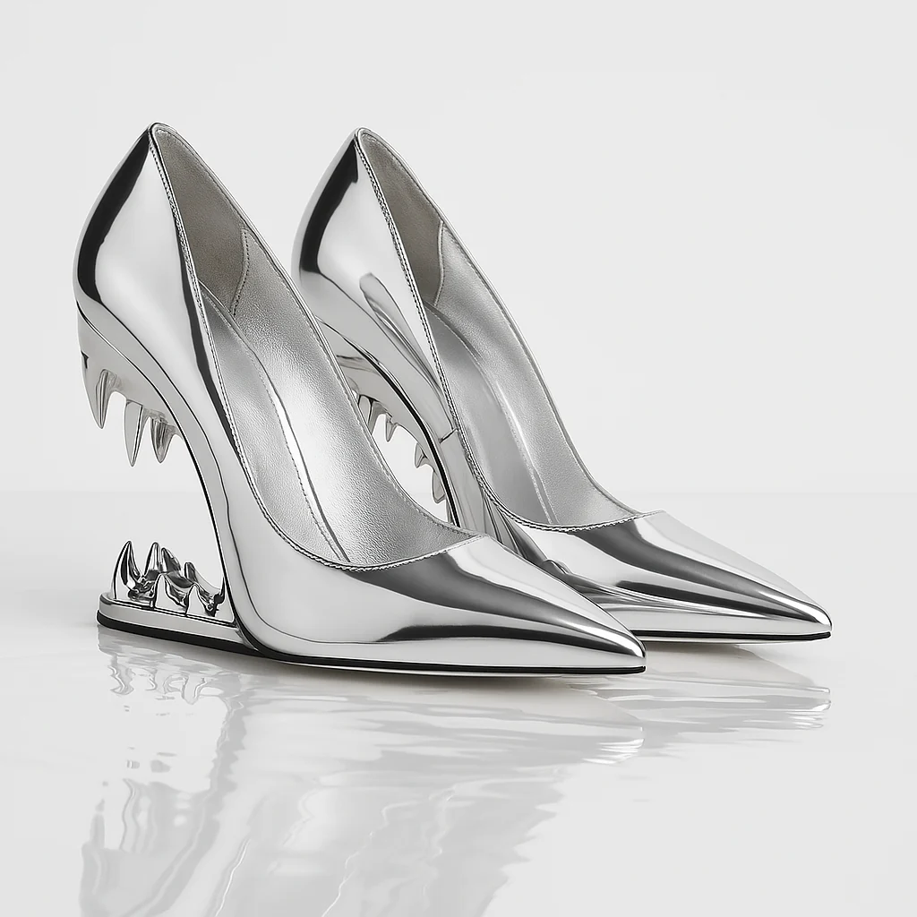 Dare to wear the bite that glistens. Frosted silver meets venomous design in a heel that doesn't ask for attention—it takes it.